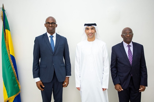Le Ministre de l’Économie et des Finances, Thierry MINKO, aux côtés du Ministère de l’Economie Numérique, Mark Alexandre DOUMBA et du Ministre délégué chargé du Budget, Marc...