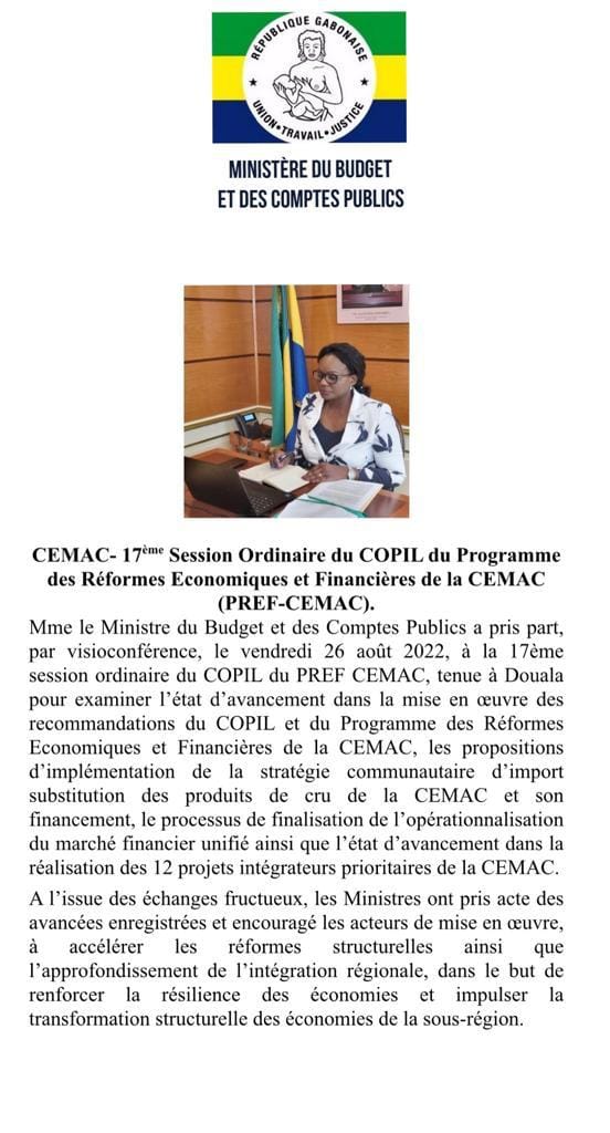 CEMAC-17ème Session Ordinaire du COPIL du Programme des Réformes Economiques et Financières de la CEMAC (PREF-CEMAC).
