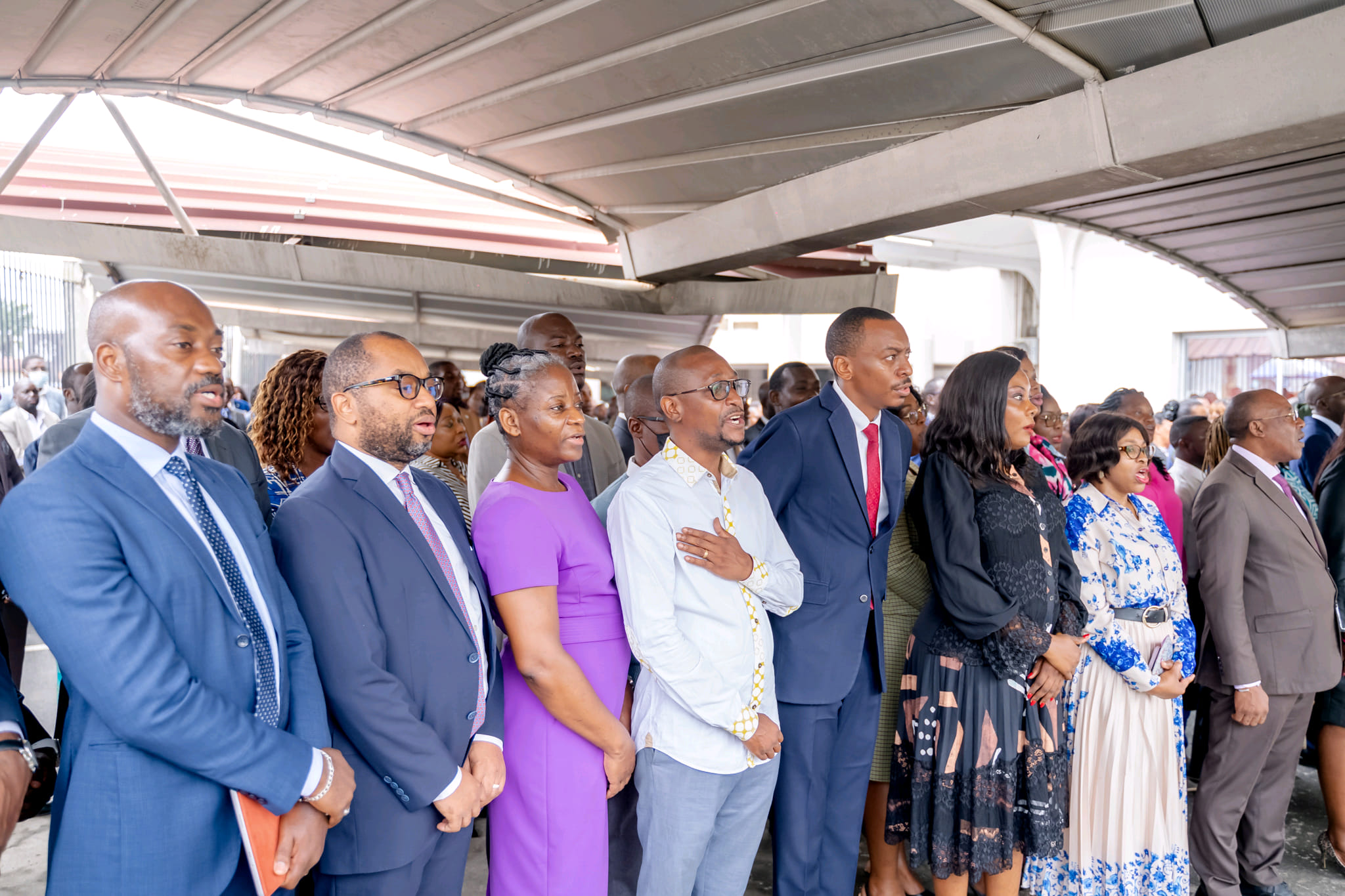Sous la conduite du Ministre #Charles M'BA, le personnel de l'ensemble des services du Ministère a chanté en chœur les 4 couplets de l'hymne national "la Concorde", dans une ambiance de responsabilité et de conscience civique.